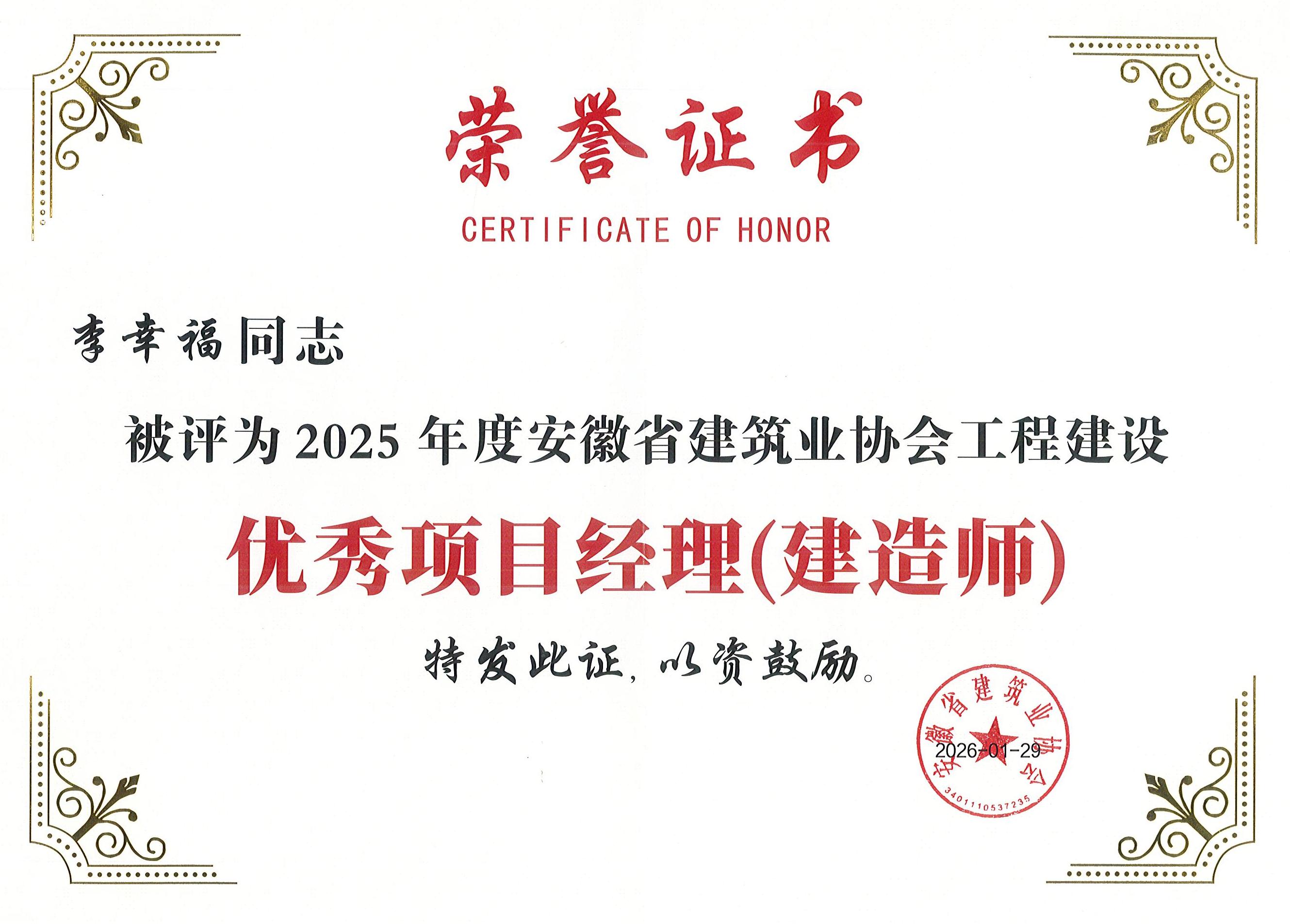 2025年度安徽省建筑业协会工程建设优秀项目经理